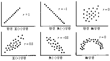 세번째 산점도 같은 경우는, r=0이고 완전 무상관하게 산점도가 형성이 되어있다.