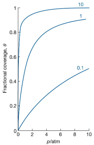 - $K(평형상수) = k_a/k_d$ : Langmuir isotherm