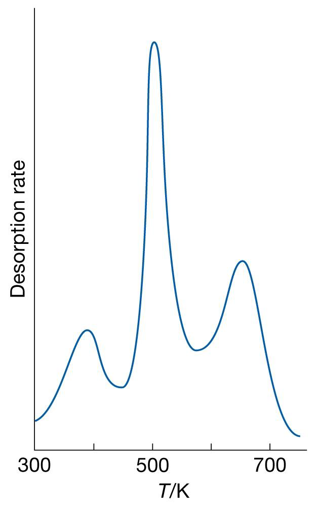 - Temperature programmed desorption (TPD, 온도에 따라 moelcule의 pressure를 측정) or thermal desorption spectroscopy (TDS)