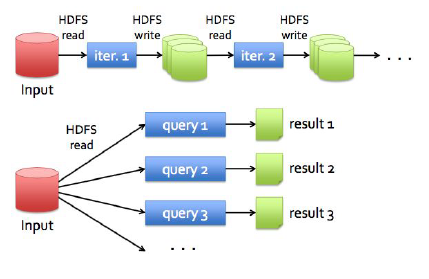 MapReduce와 Dryad 등은 대규모 데이터 분석을 용이하게 만들었지만 반복 알고리즘이나, 대화형 마이닝 툴과 같은 어플 리케이션의 경우에는 상당히 비효율적이었다. 왜냐하면 MapReduce와 같은 경우에는 Fault-Tolerance를 위해 중간 데이터를 storage에 쓰게 되는데, 반복 알고리즘의 경우 이 중간 값을 다시 input으로 반복해서 사용하기 때문에 Disk I/O와 직렬 화 등으로 인한 overhead가 비교적으로 크게 발생하기 때문이다.