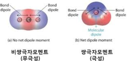 극성의 경우, 전기음성도가 O, H와 차이점이 있지만, 비대칭구조를 가지고 있기 때문에, 극성이 남아있는 극성이다.