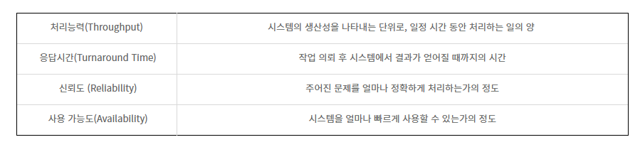 따라서 처리능력, 응답시간, 신뢰도, 사용가능도 이 4가지를 기준으로 OS를 평가한다면, 좋은 OS를 만들 수 있다.