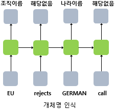 - ex 3) 다 대 다 : 챗봇과의 대화, 번역기, 개체명 인식, 품사 태깅