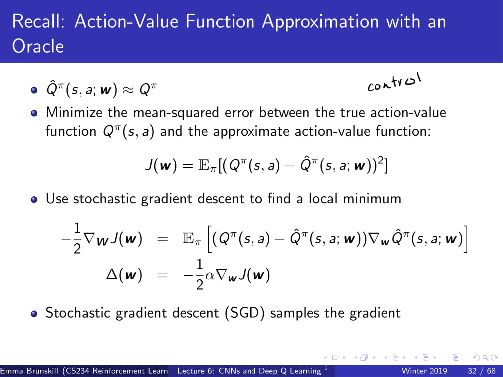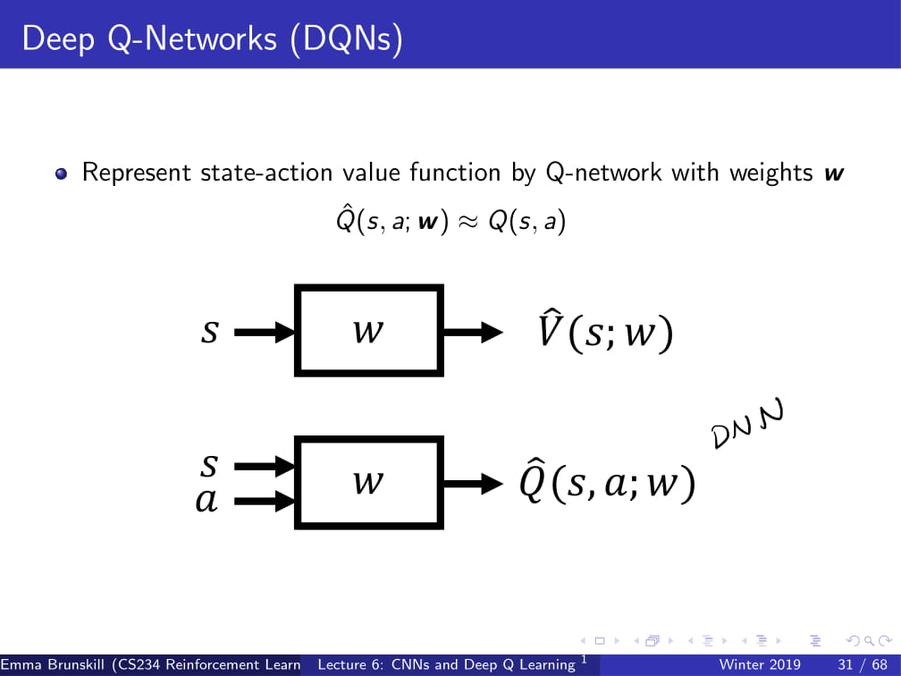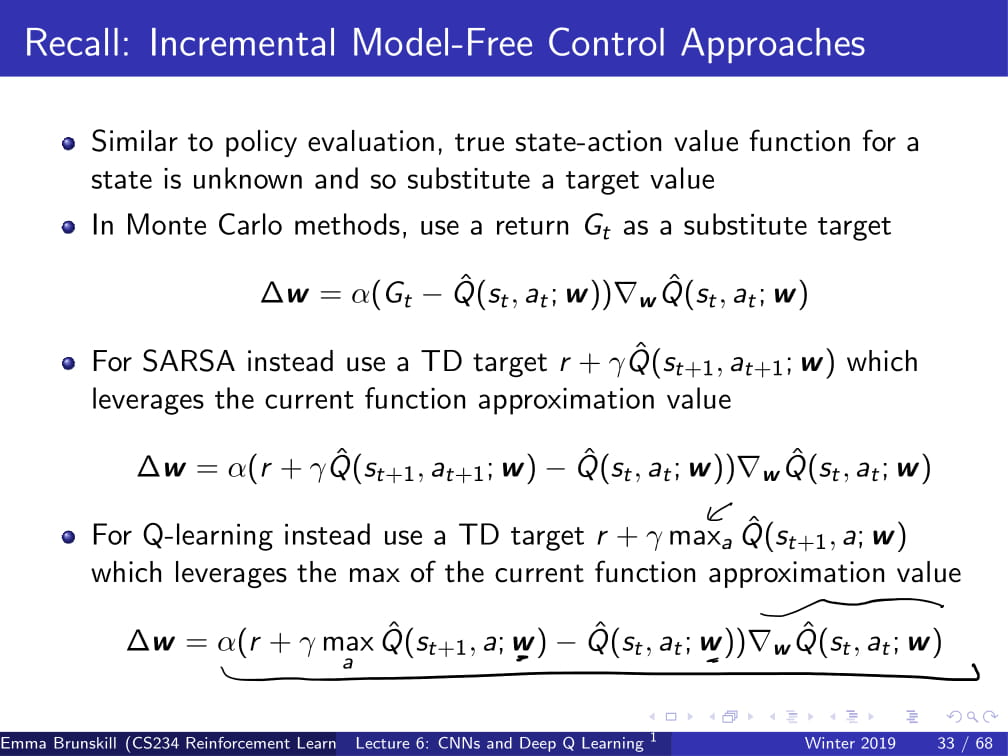 model free한 문제인 Atari Game의 단계들을 사진들의 Feature들을 모아서 Input으로 하고, output을 Value Function으로 하고 있다. 따라서, 경험된 데이터에서 학습하여, predicition을 하는 방법을 쓴다. 추정된 Value funciton은 future reward을 추정하는데 이용되는 재료가 될 것이다.