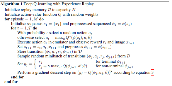finite capacity N을 가진 replay memory D를 정의하고 Q-learning을 위해 Q-value를 initialize 시킨다. 1 episode동안 sequence를 initialize시키고 pre-process 시킨다.