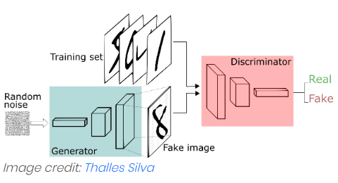 "Data를 만들어내는" Generator와 만들어진 "data를 평가하는" Discriminator가 서로 대립적으로 학습해가며 성능을 점차 개선해 나가자는 개념