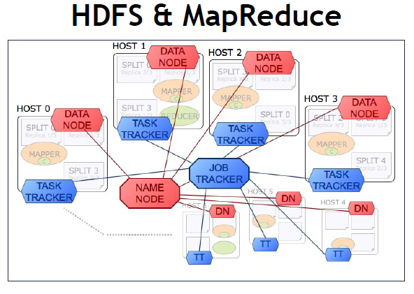 HDFS에 파일을 나눠서 저장, MapReduce라는 모델을 기본으로 쓴다.