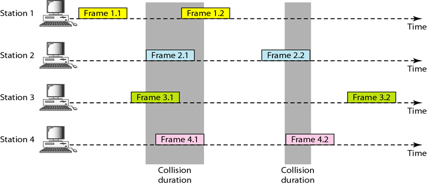 말 그대로 Random하게 보내는데, Pure 한 ALOHA는 다른 station에서 보내던 말던, 그냥 자신의 data를 보낸다.