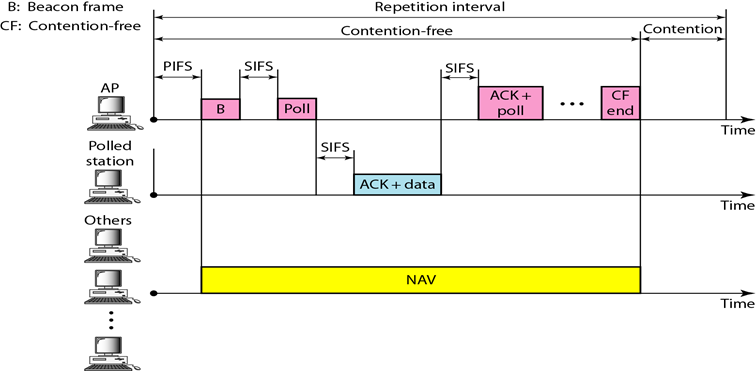 - - AP의 중앙집중형 polling 을 쓴다. 모든 station에 대한 서비스를 직접 제어
