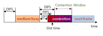 - - DCF는 Contention Service를 한다. (의무적으로 기다리는 시간)