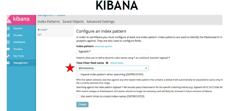 index patterns 을 적용할 파일들을 logstash-* 로 한 것은 logtash- 로 시작하는 파일들은 모두 이 pattern으로 적용한다는 의미다.