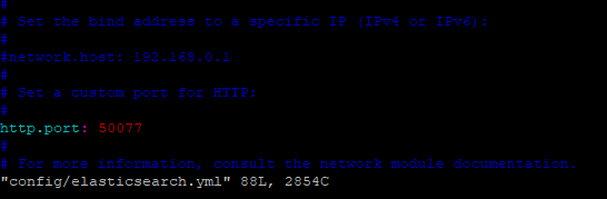 Elasticsearch를 나중에 kibana와 연결하기 위해서는 http.port를 50077, 잘 쓰지않는 port 번호로 열어준다.