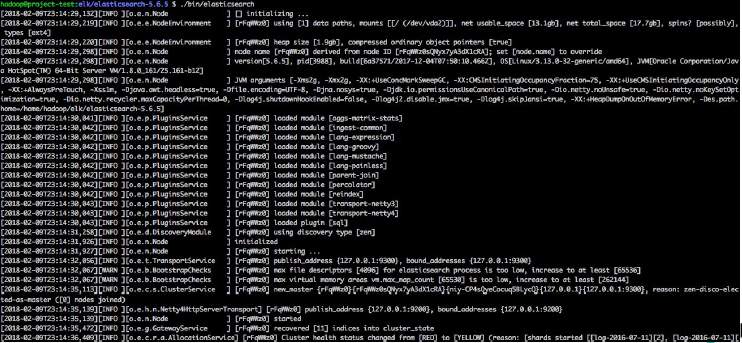 아마 Elasticsearch 실행하면 다음과 같은 화면이 출력되면서 실행되는 것을 알 수 있다.