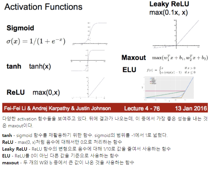 Activation Function (활성화 함수 : 특징을 가지고 있다, 없다로 바꿔주는 과정 필요)