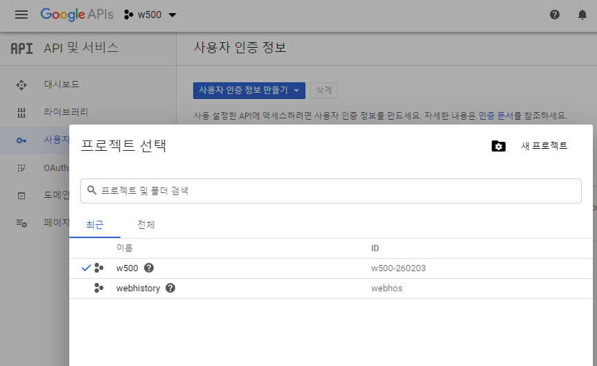 우선 Google API로 들어가서 프로젝트를 생성한다.